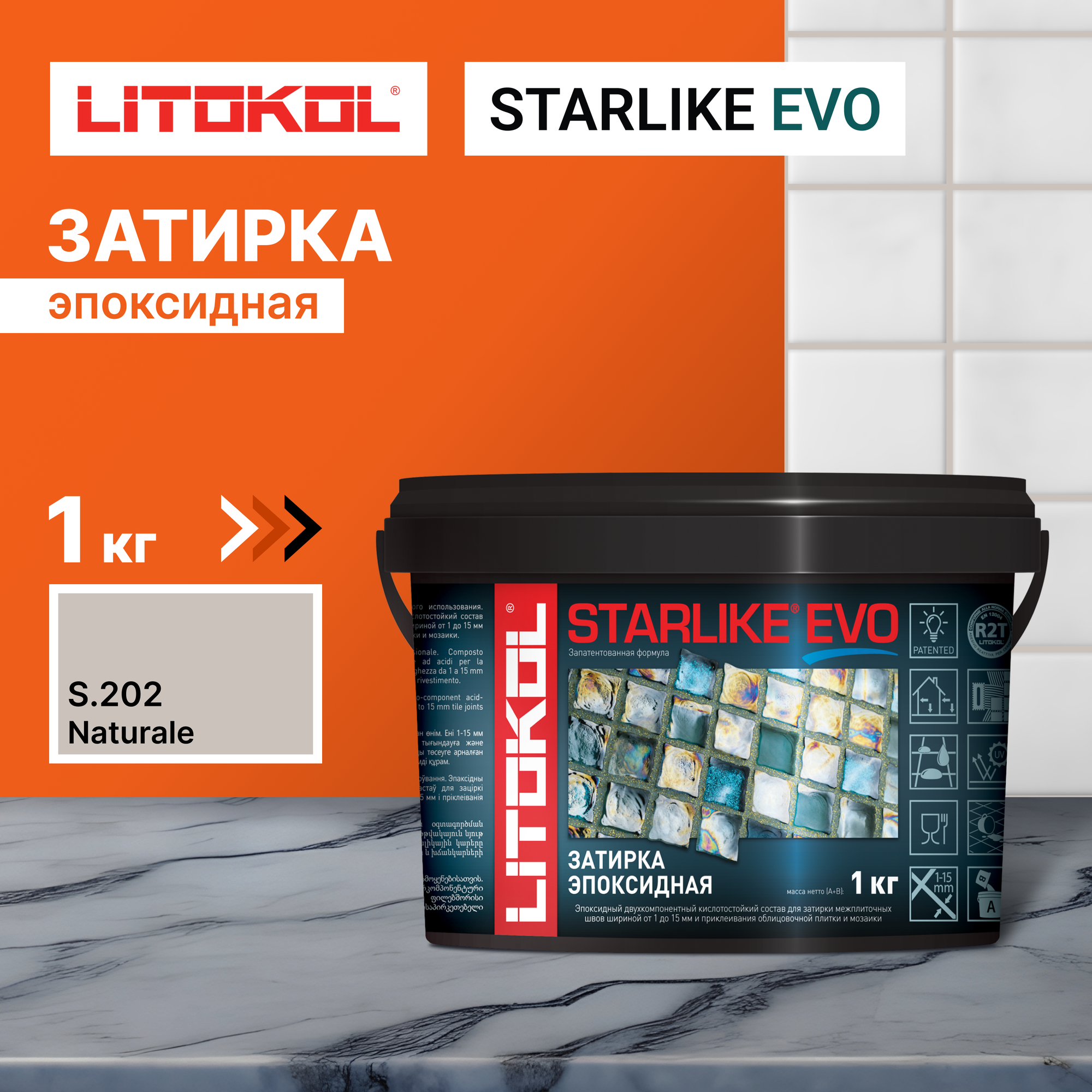 Купить Затирка для плитки эпоксидная LITOKOL STARLIKE EVO (старлайк ЭВО) S.202 NATURALE, 1кг