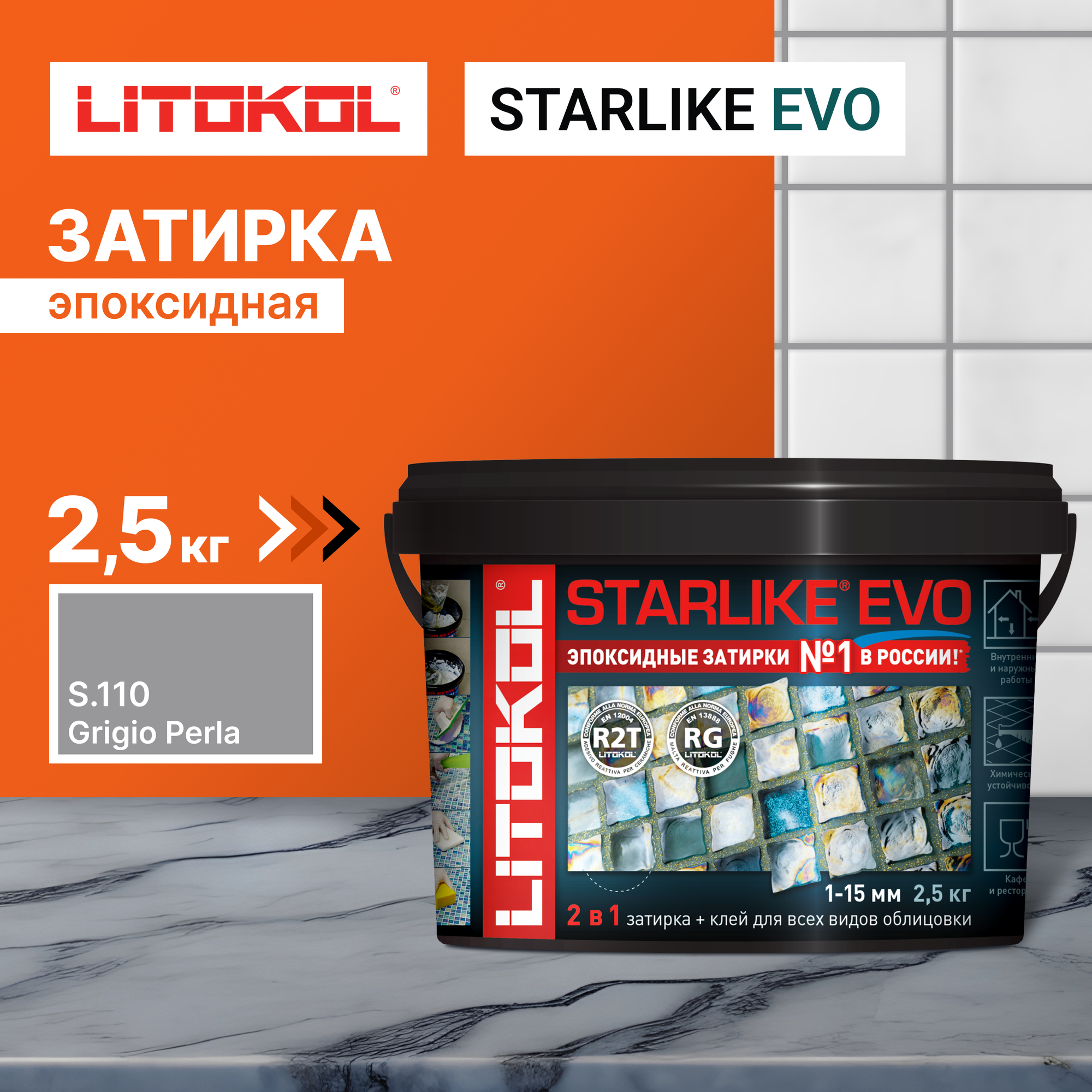 Купить Эпоксидный состав для укладки и затирки мозаики и керамической плитки LITOKOL STARLIKE EVO S.110 GRIGIO PERLA