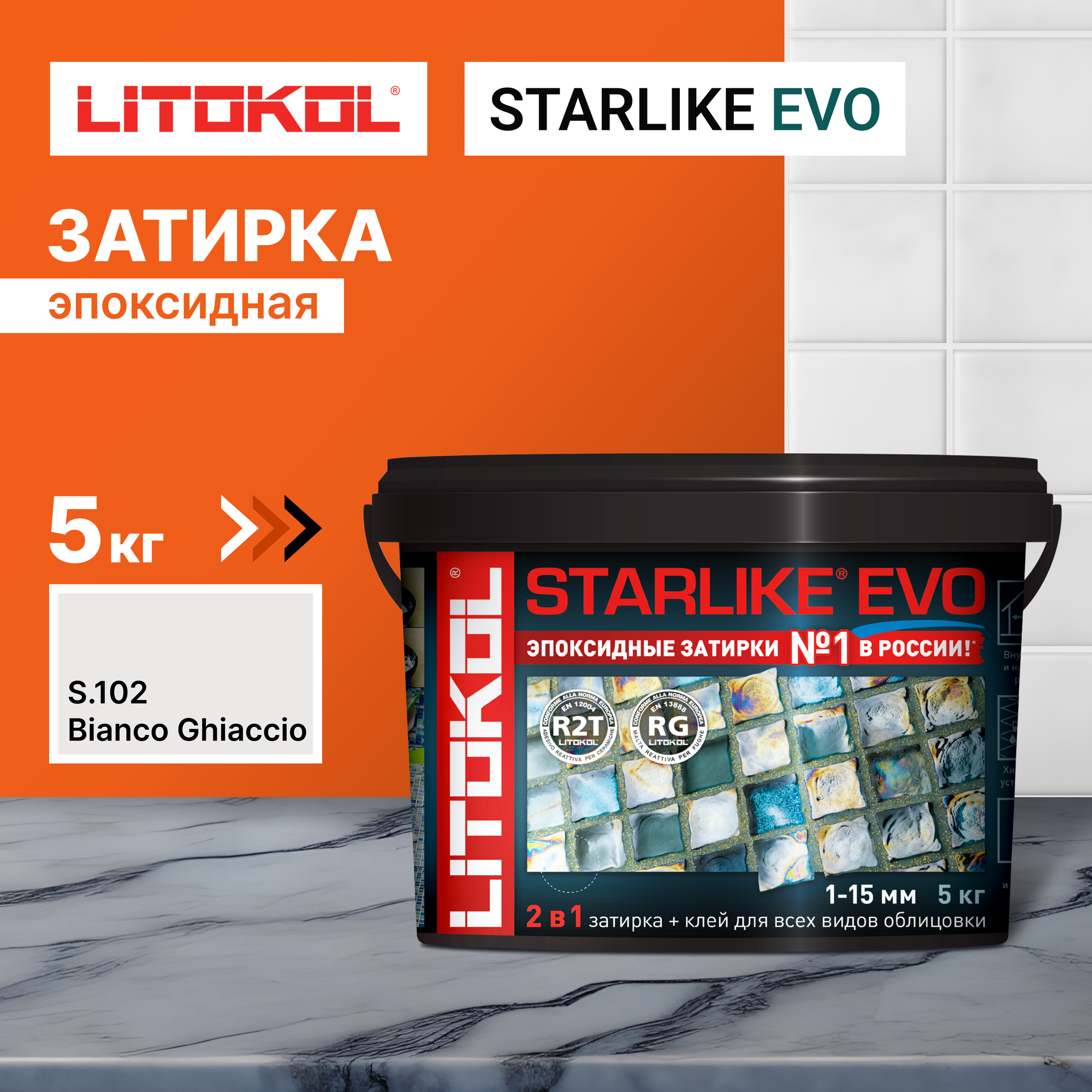 Купить LITOKOL STARLIKE EVO двухкомпонентная затирка на эпоксидной основе S.102 bianco ghiaccio (5кг)