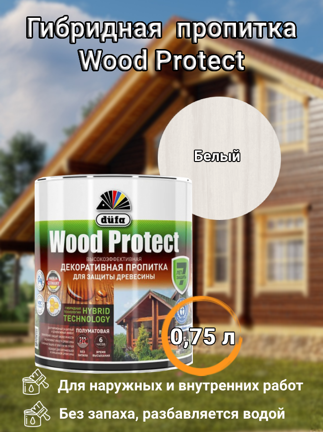 Купить Dufa пропитка Wood Protect, 0.75 кг, 0.75 л, белый