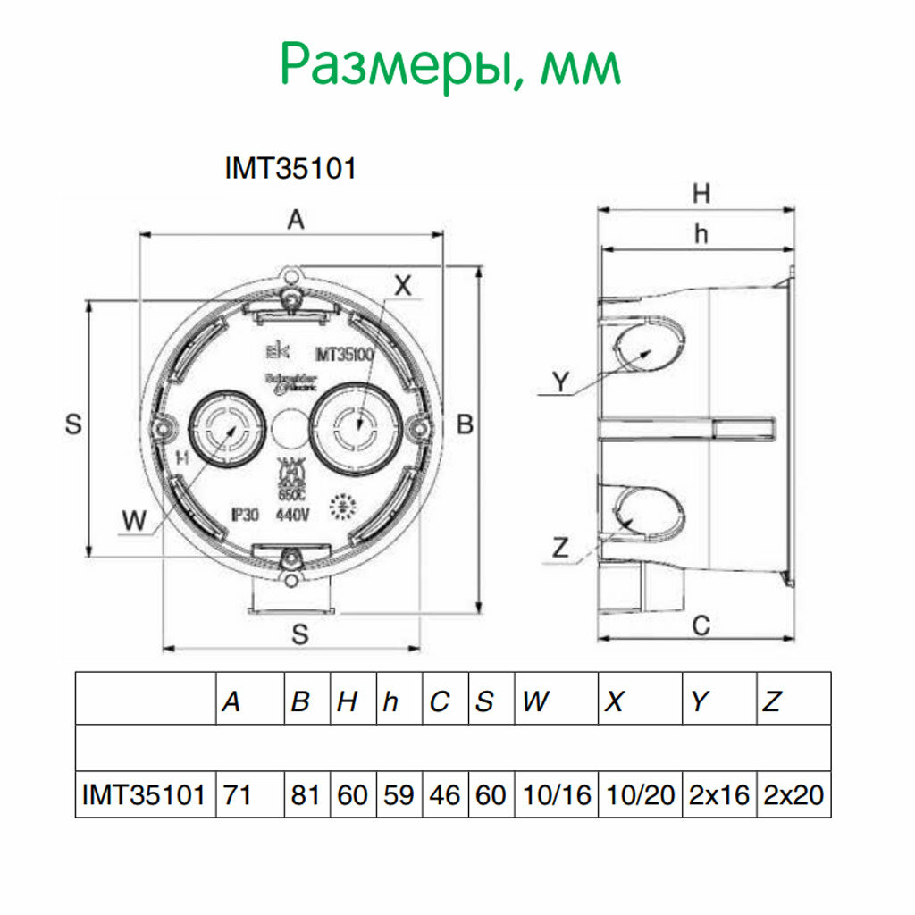коробка монтажная для сплошных стен 68(65)X45, зеленая | код. IMT35100 | Schneider Electric ( 1шт. )