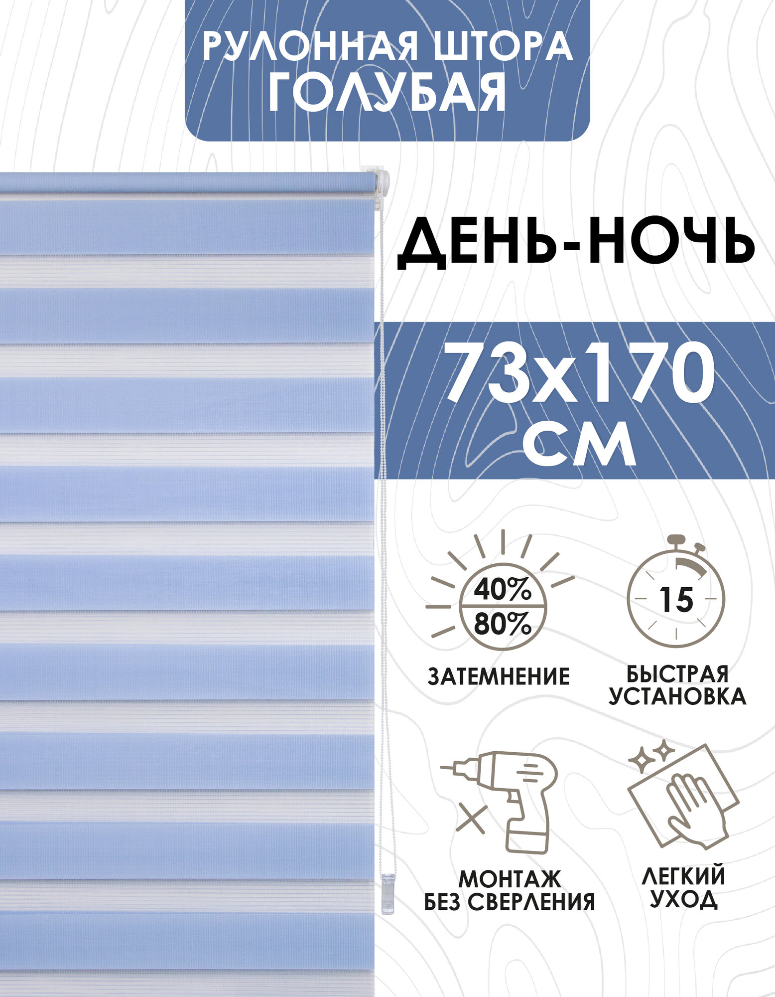 Миниролло Эскар День-Ночь, полиэстер, голубой, 73х170 см