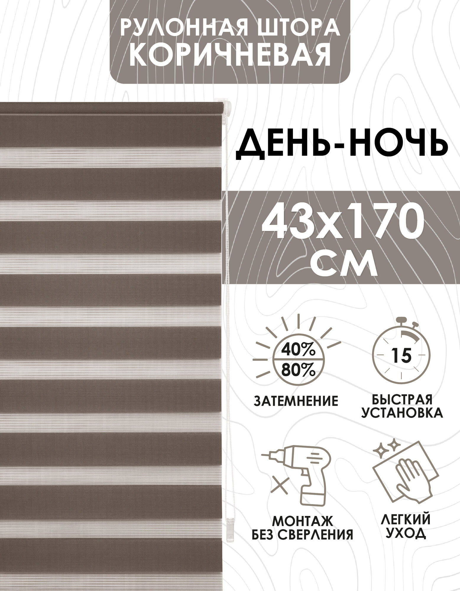 Миниролло Эскар День-Ночь, полиэстер, меланж коричневый, 40х170 см