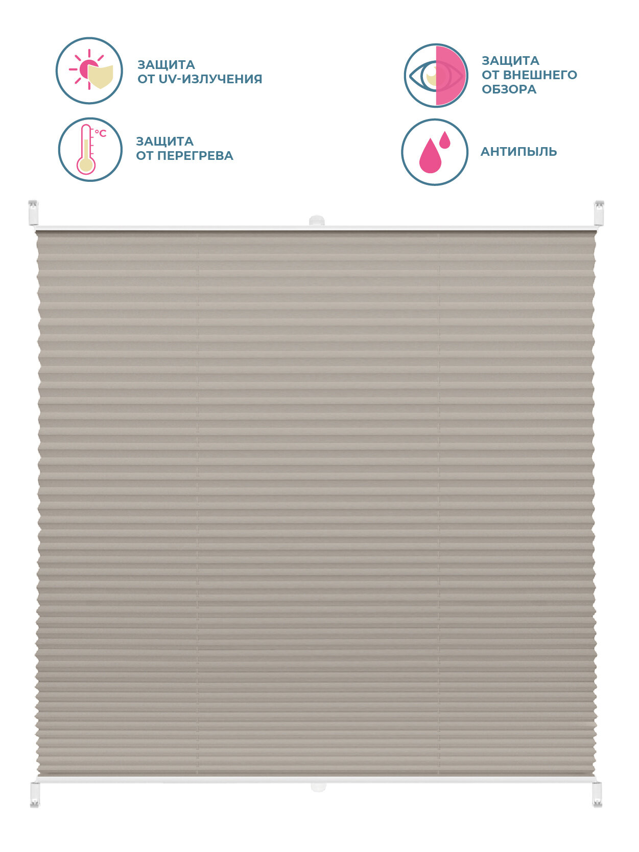 Штора плиссе Плайн Серый DECOFEST 45 см на 160 см, жалюзи на окна
