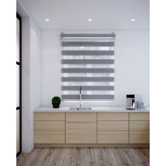 Рулонные шторы день ночь 120 см х 160 см Серый Бейс DECOFEST