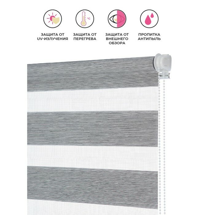 Рулонные шторы день ночь Бейс Серый DECOFEST 60 см х 160 см, жалюзи на окно