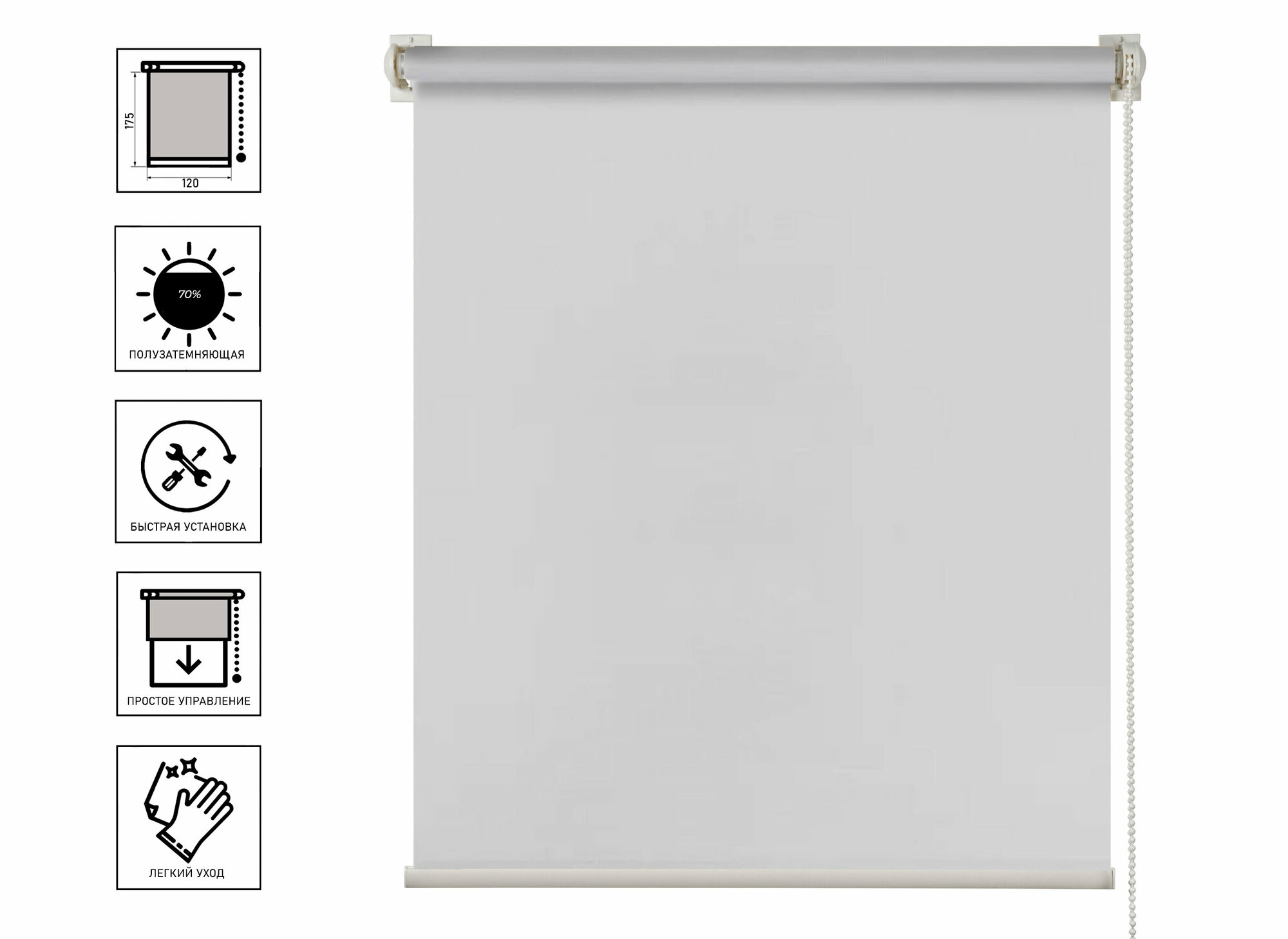Рулонная штора DOMLEGRAND лестер 120 на 175 серый / Рулонные шторы на окна не блэкаут / Жалюзи на окна / Шторы не блэкаут