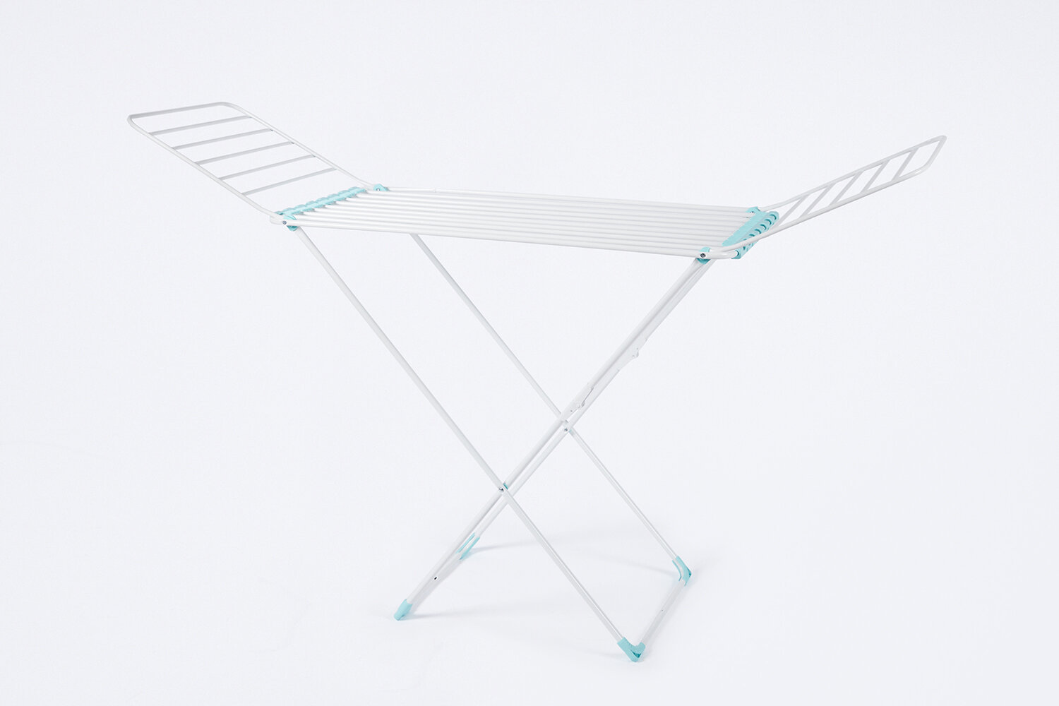 Сушилка для белья напольная складная, серебряный, 3 зоны, до 15 кг. Пластмассовые наконечники на струнах обеспечивают дополнительную устойчивость и предотвращают скольжение белья