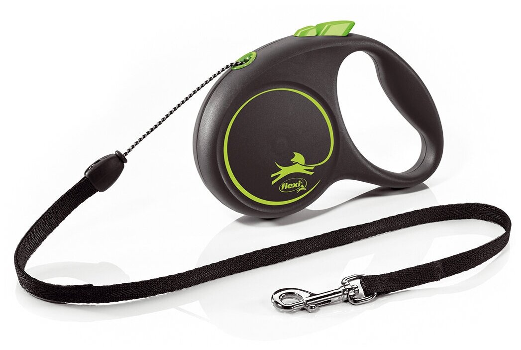 Flexi Black Design cord S поводок-рулетка для собак, зеленая 5 м, до 12 кг