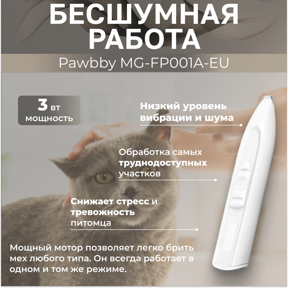 Машинка для стрижки животных Pawbby MG-HC001/MG-HC001A, белый