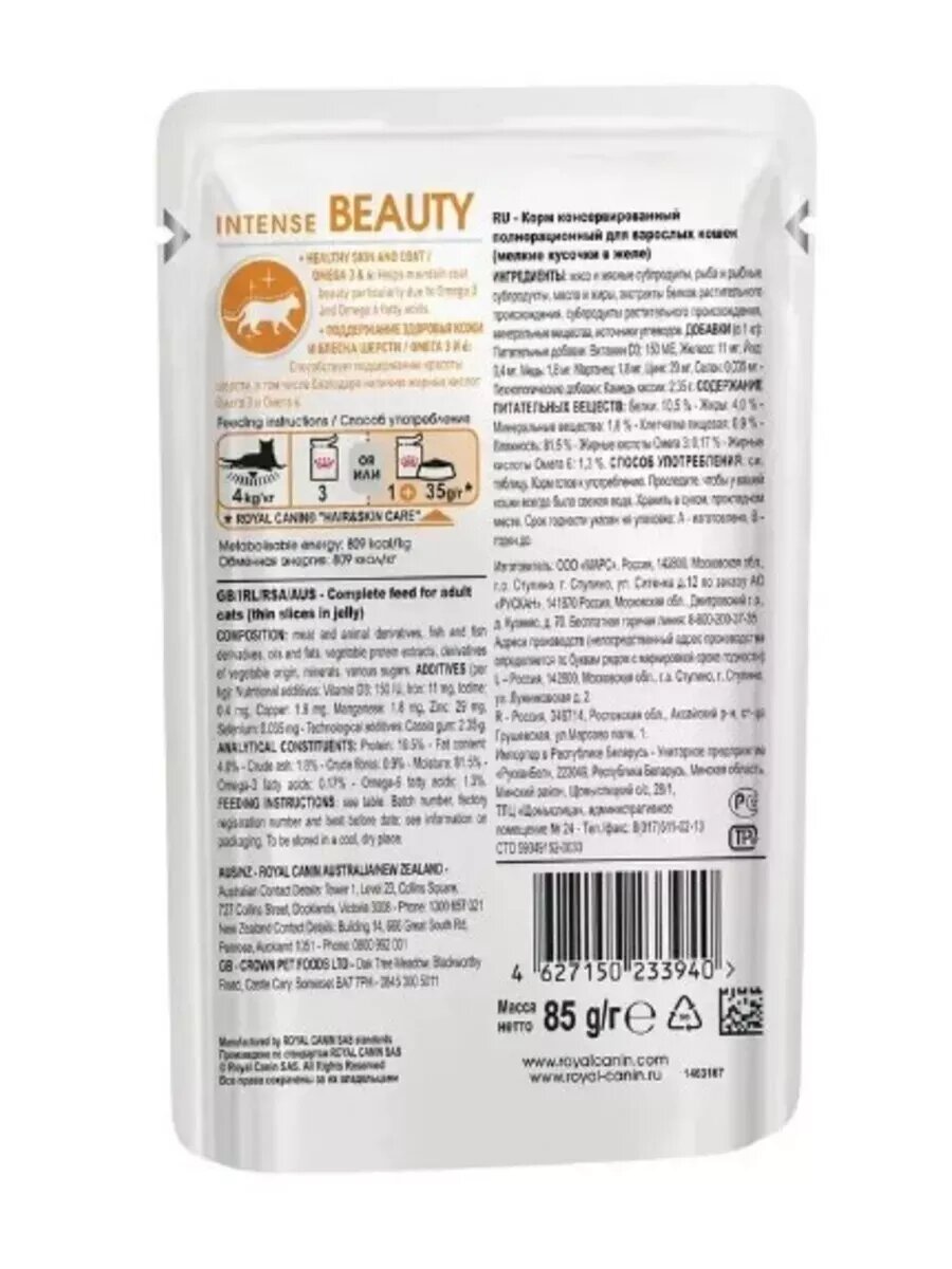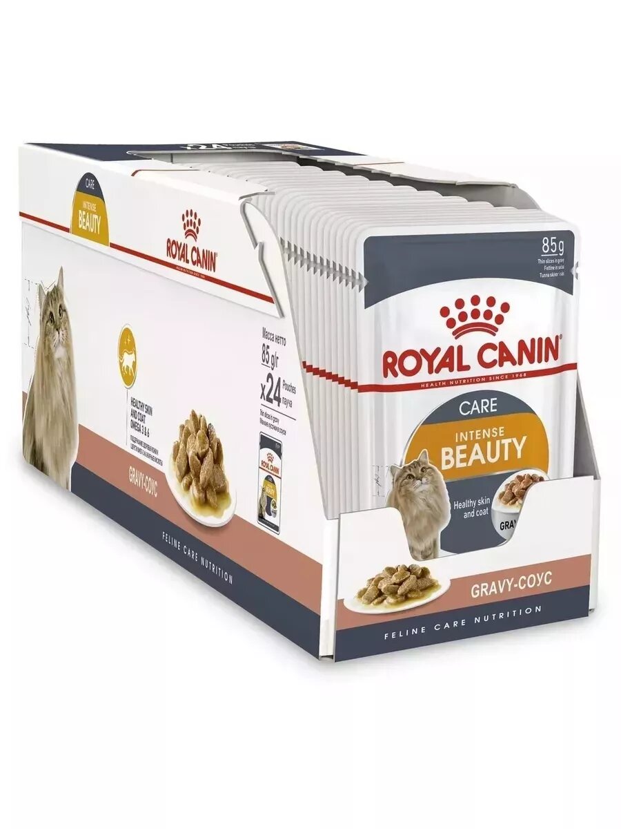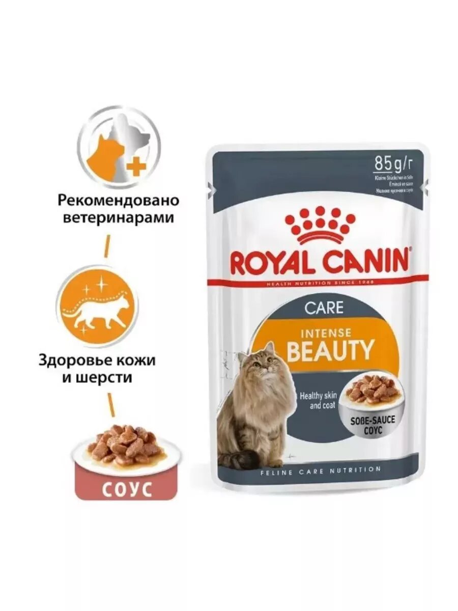 Купить Влажный корм RC Intense Beauty для кошек, для кожи и шерсти, в соусе, пауч, 85 г 28 шт