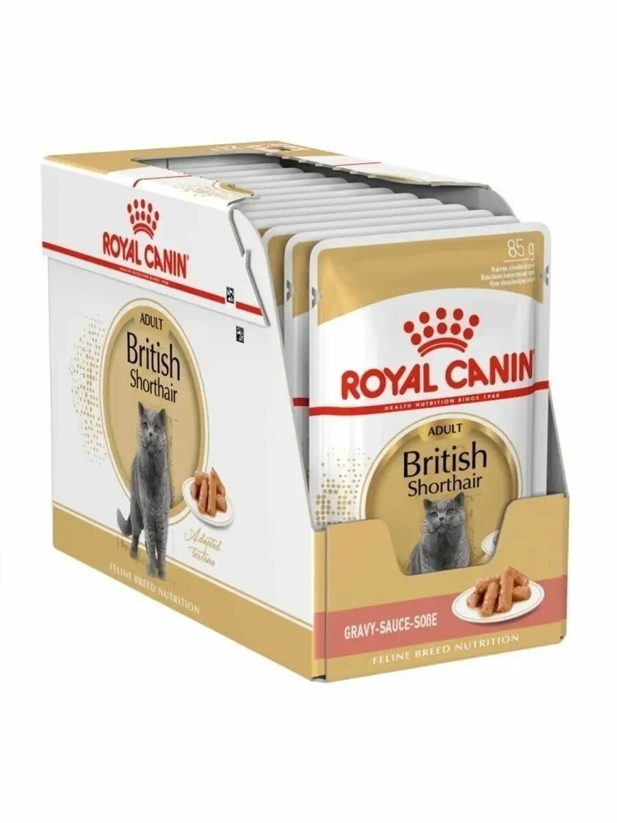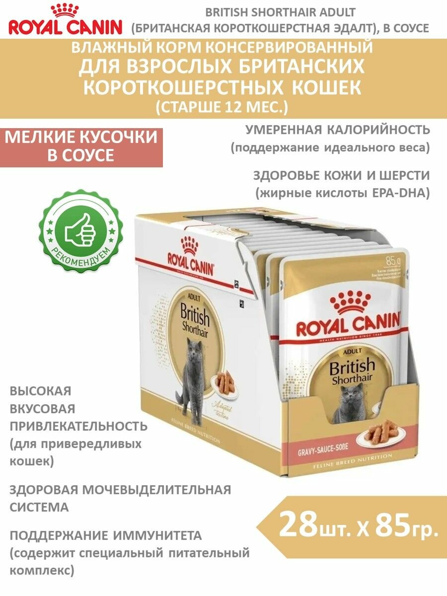 Купить Royal Canin Упаковка 28шт. Паучи Кусочки в соусе для Британской Короткошерстной кошки старше 12 месяцев British Shorthair, 85г*28 2.38 кг