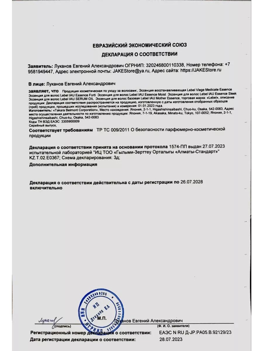 СохранитьЭмульсия Lebel Cosmetics IAU Essence Forti, 100 мл интересное: