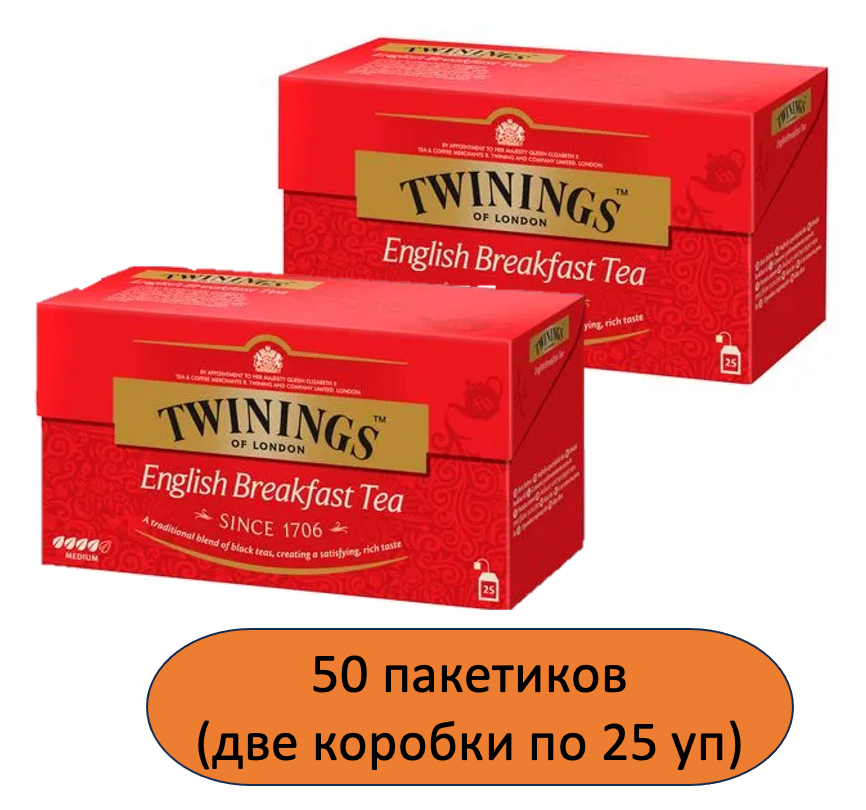Чай черный в пакетиках Twinings English Breakfast, 2шт x 25пакетиков