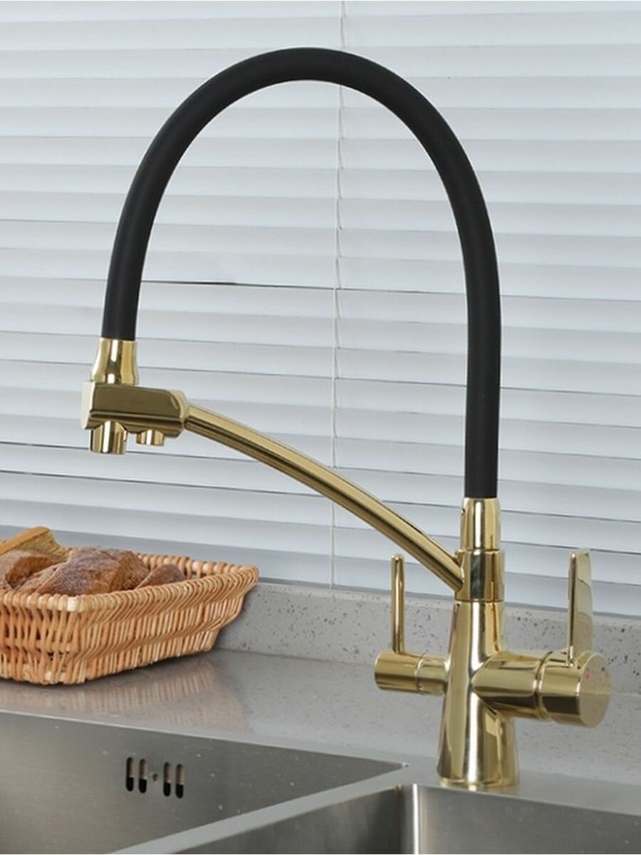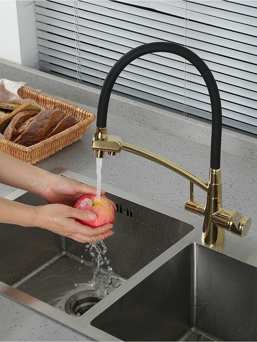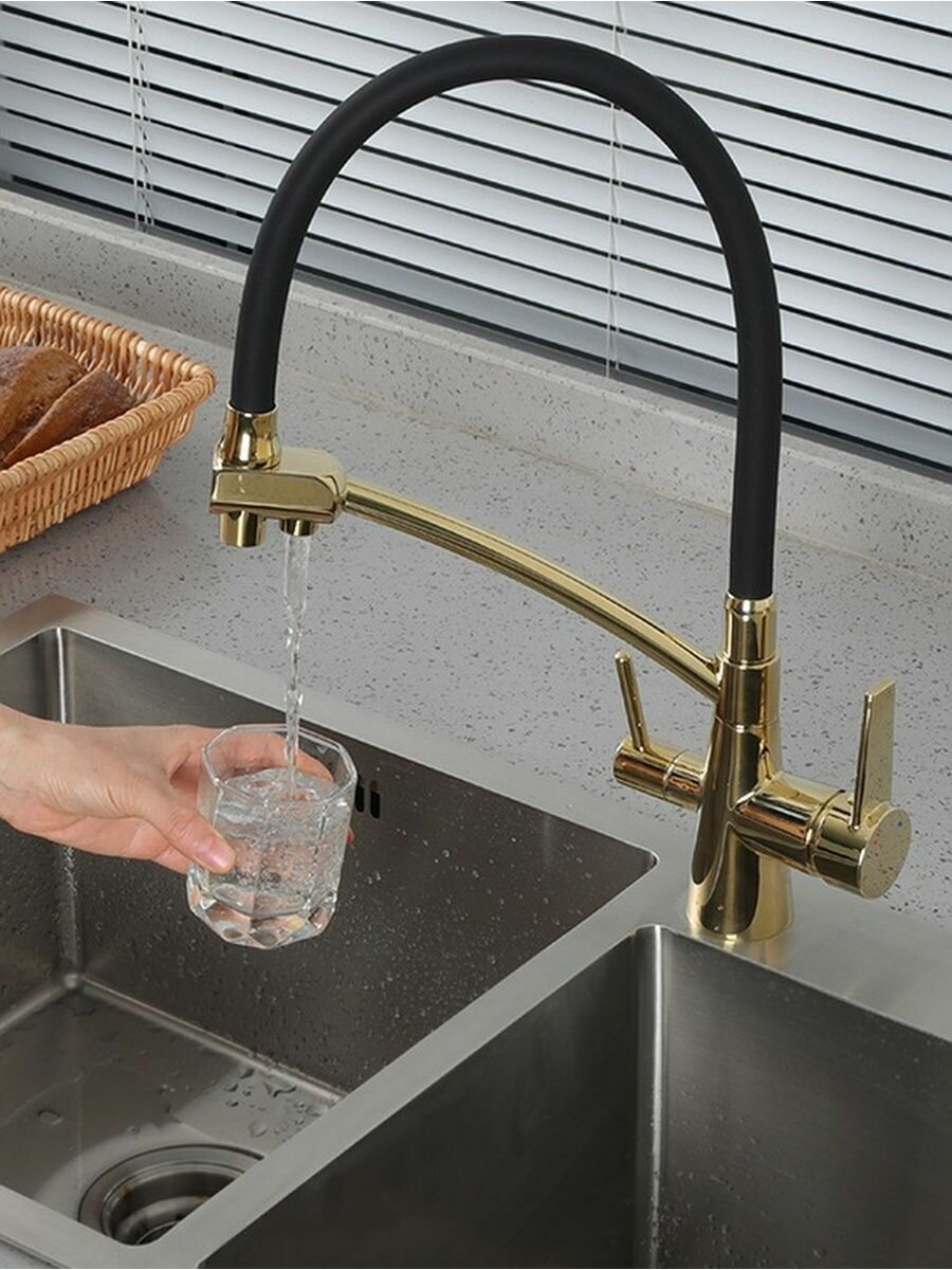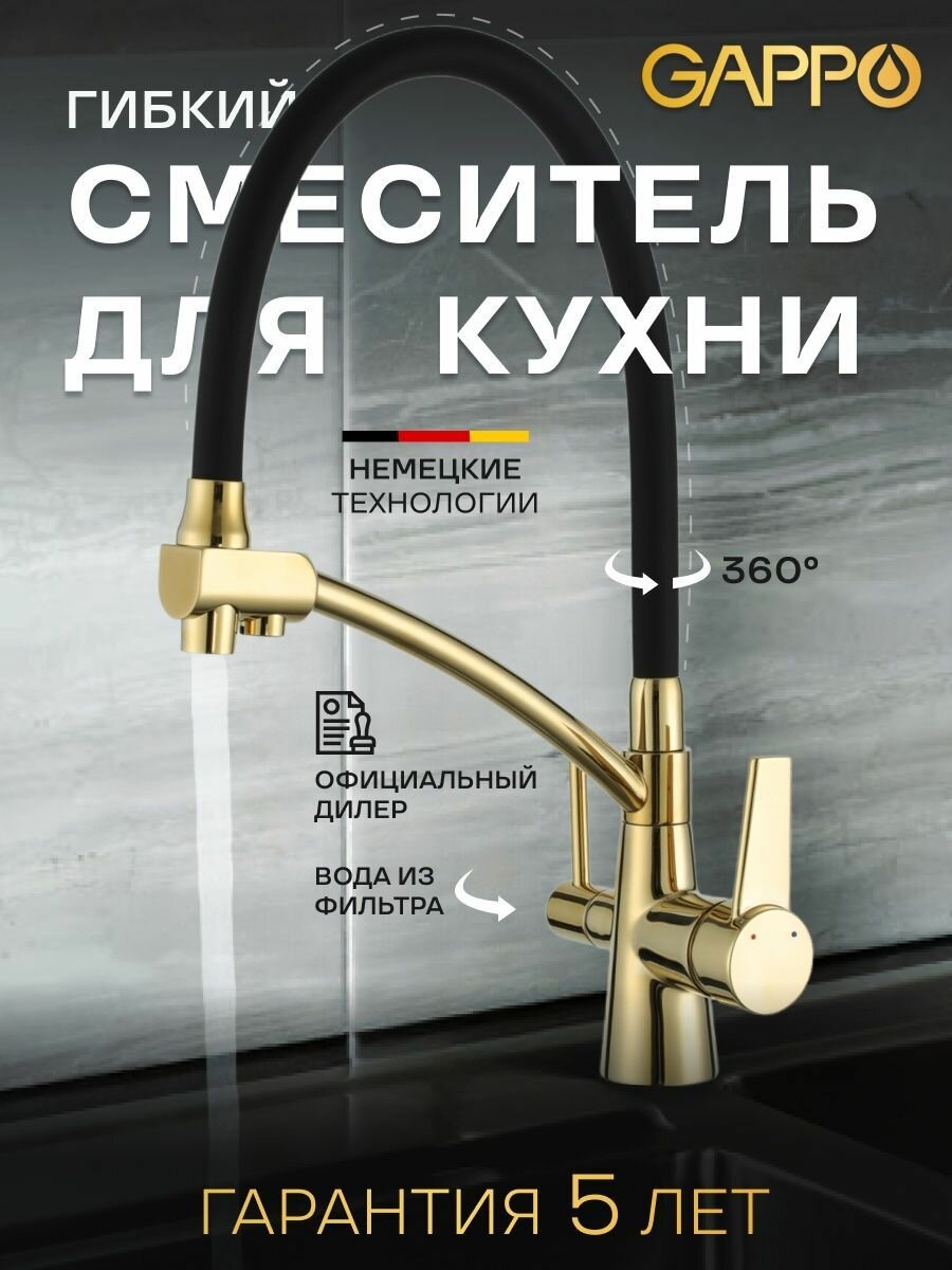 Смеситель для кухни под фильтр Gappo G4398-13 золото сатин,черный