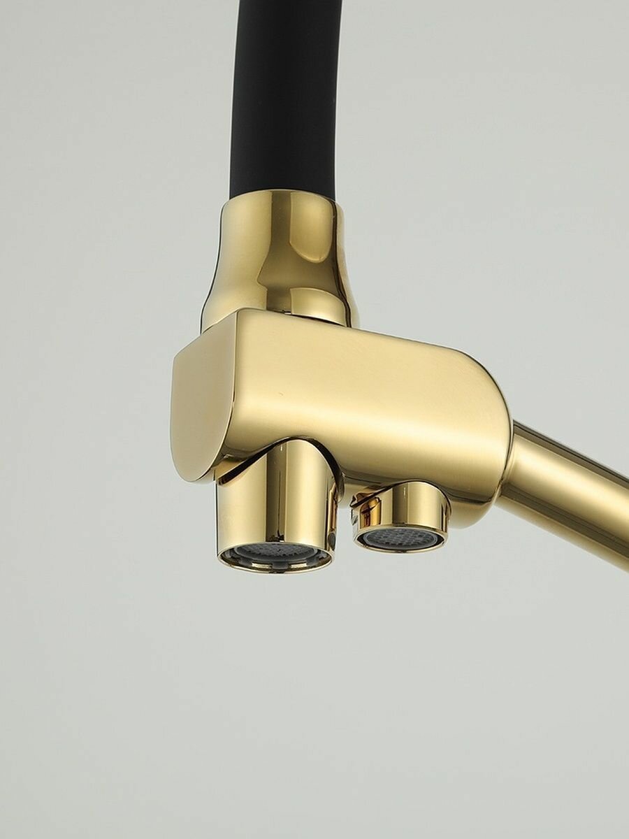 Купить Смеситель для кухни с гибким изливом Gappo G4398-13, черный/золотой