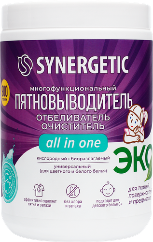 Купить Отбеливатель-пятновыводитель для тканей и поверхностей SYNERGETIC кислородный, 900г
