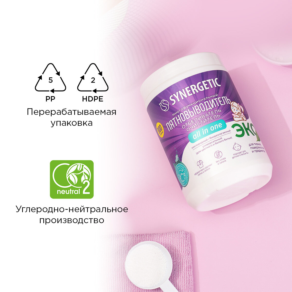 Биоразлагаемый гипоаллергенный отбеливатель-пятновыводитель SYNERGETIC 111102