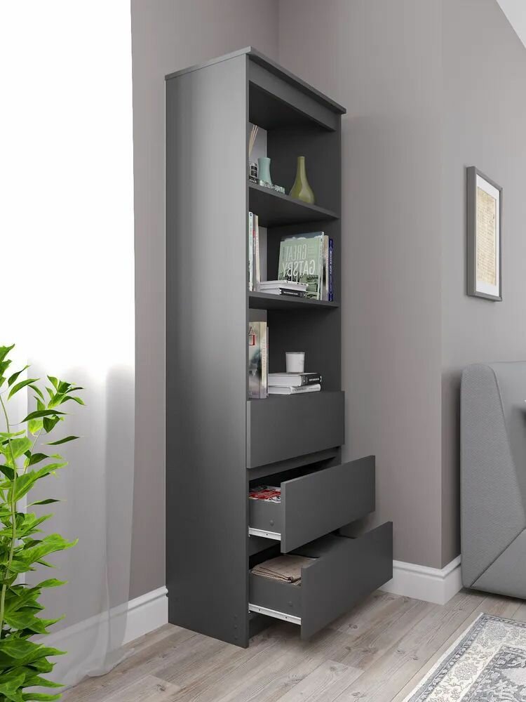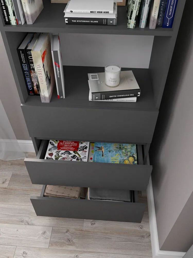 Стеллаж деревянный Нонтон Симпл графит 40.2x51.4x190 см, с ящиками