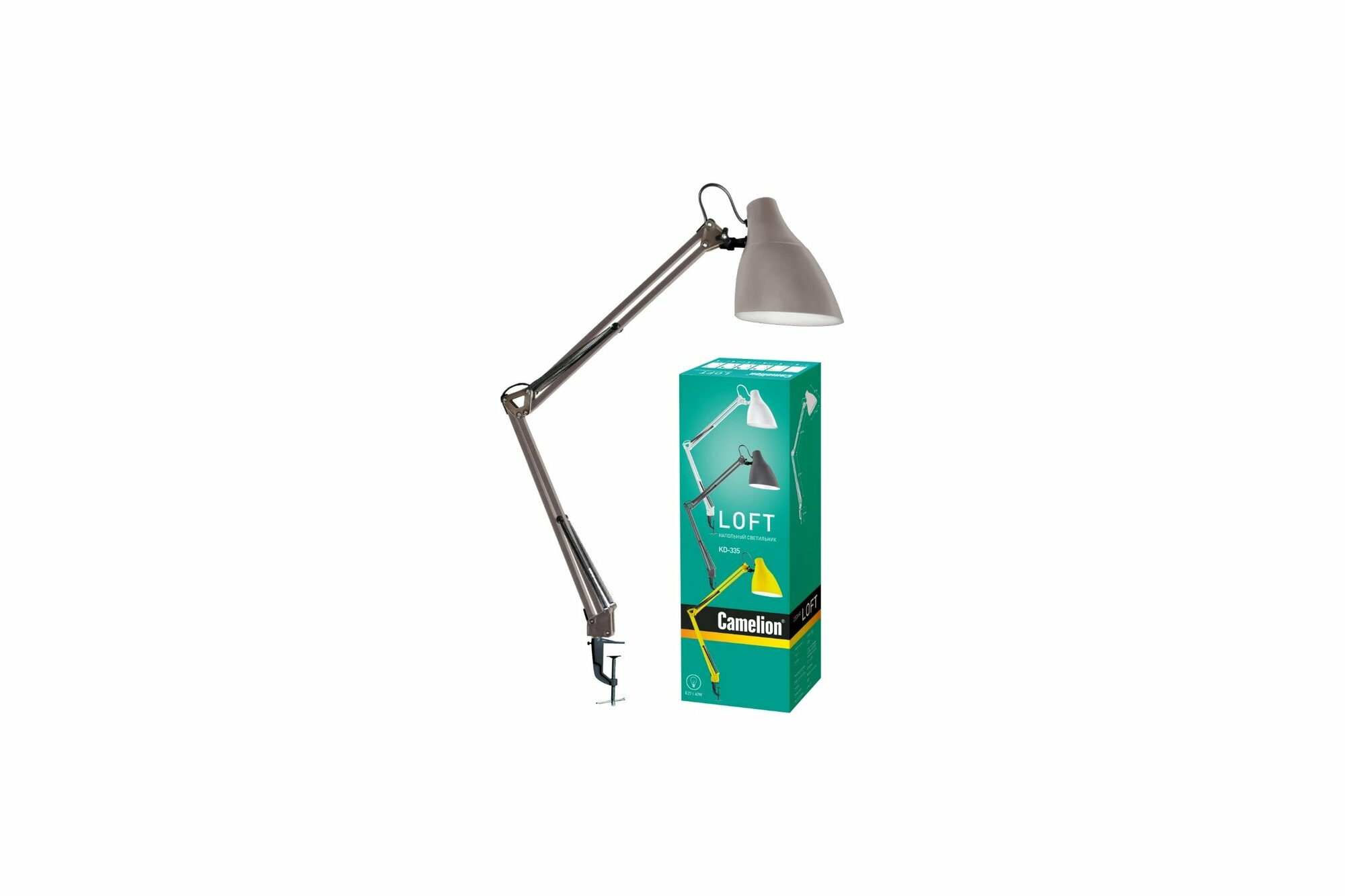 Светильник Camelion LOFT KD-335 C09 настольный 40W E27 металлическая струбцина, серый e13881