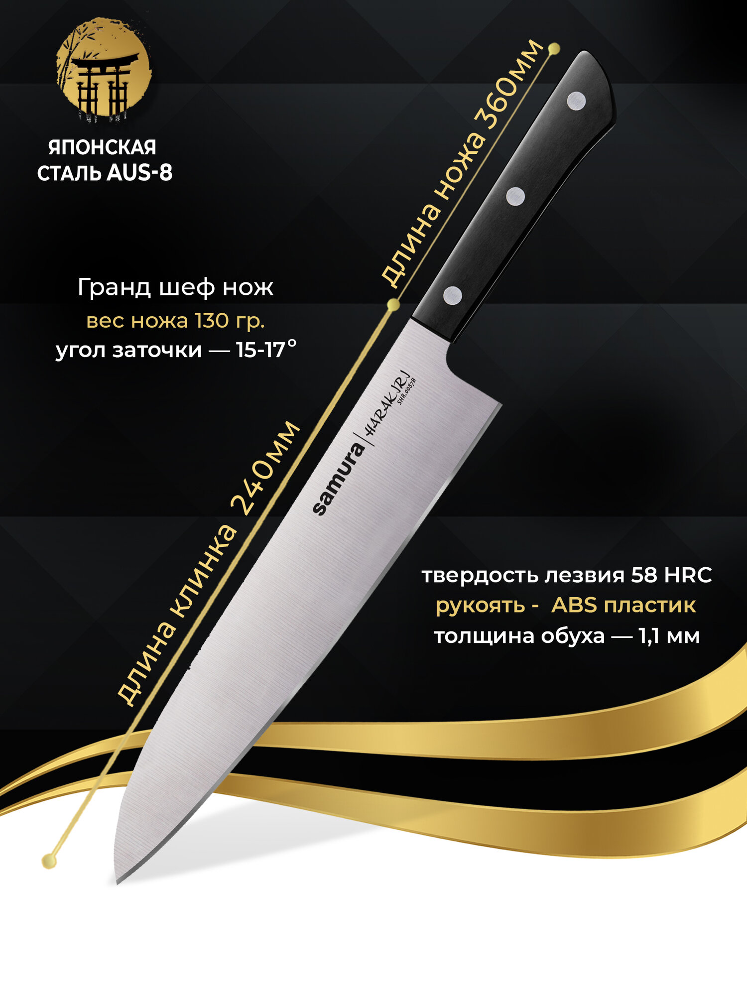Ниже Вы можете прочитать отзывы на Шеф-нож кухонный Гранд Samura Harakiri SHR-0087B, 24 см, черный, ознакомится с подробными характеристиками, посмотреть интересные обзоры и фотографии на Шеф-нож кухонный Гранд Samura Harakiri SHR-0087B, 24 см, черный.