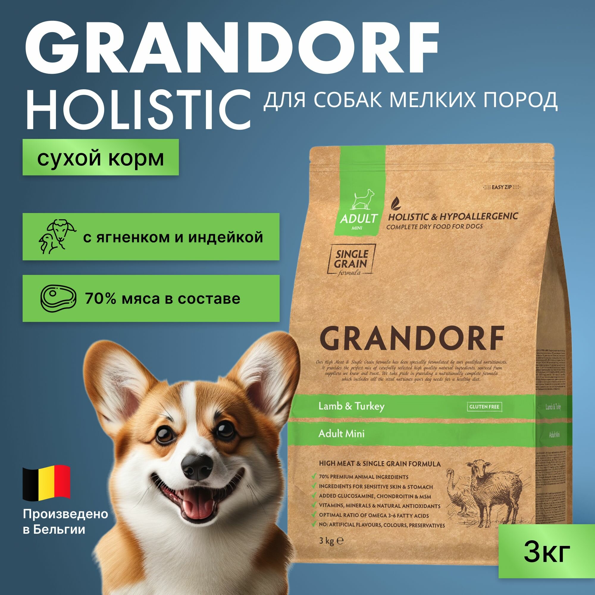 Корм для собак сухой для мелких пород Grandorf с ягненком и индейкой, 3кг