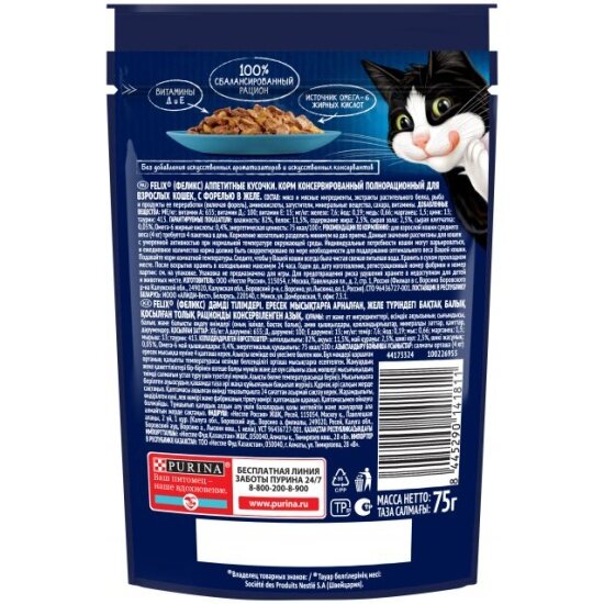 Купить Влажный корм для взрослых кошек Felix Аппетитные кусочки форель в желе 26шт.*75г