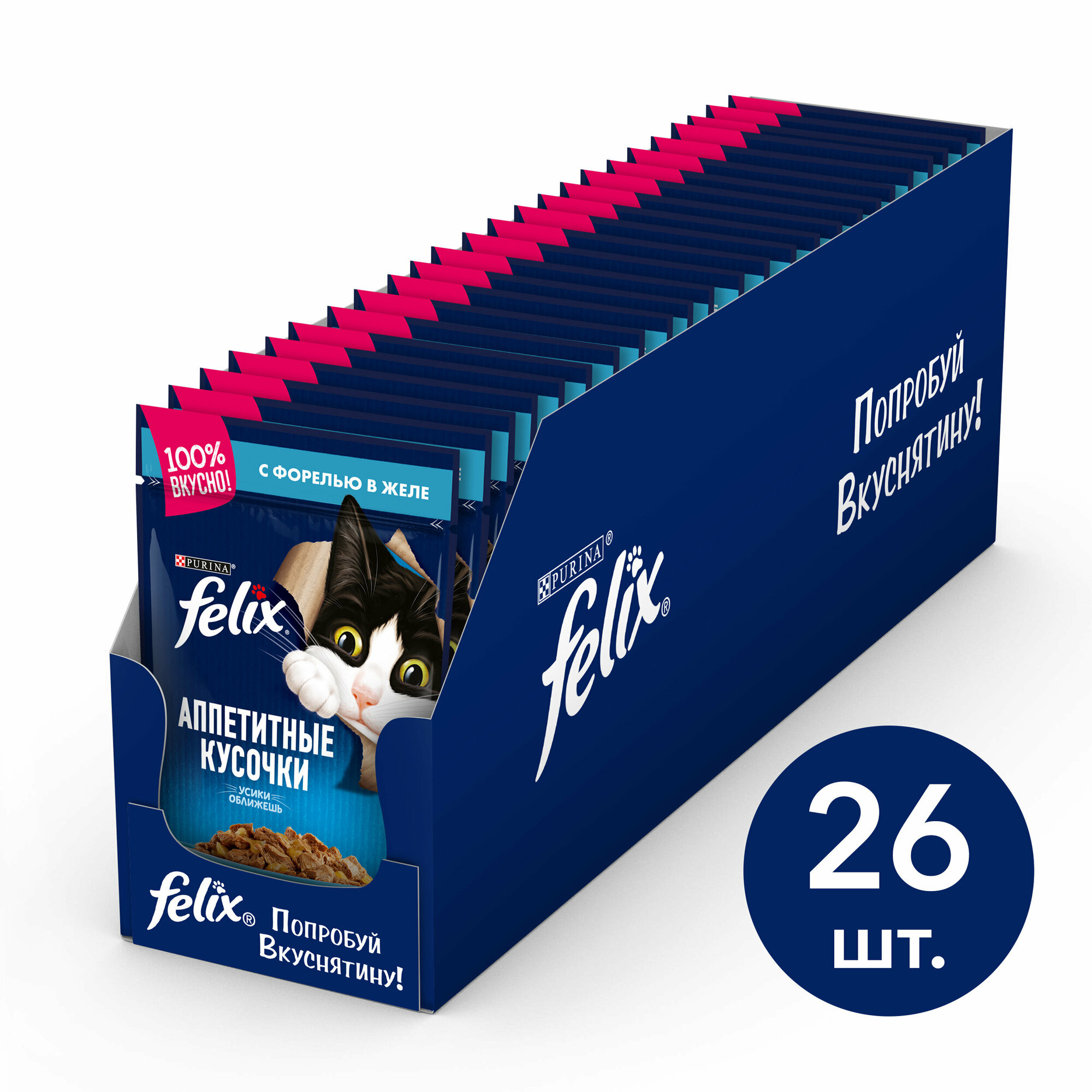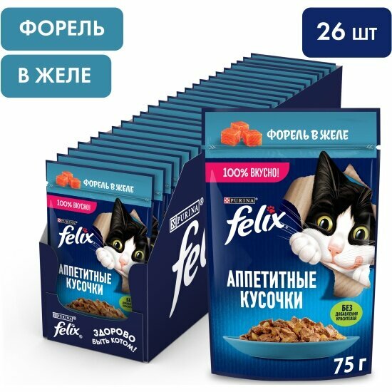 Влажный корм для кошек Felix Аппетитные кусочки в желе с форелью 26шт.*75г