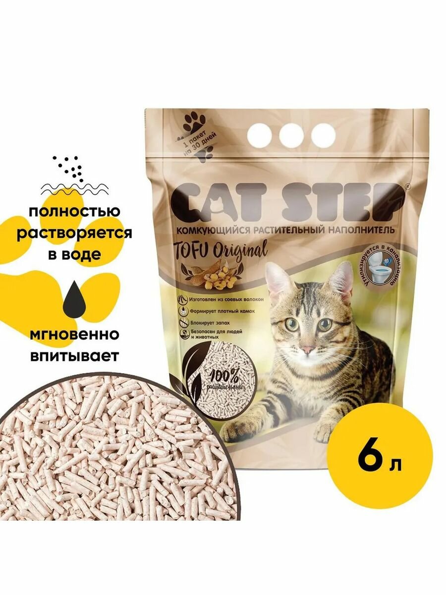 Cat Step соевый комкующийся наполнитель для кошачьих туалетов Original 6л Tofu/Тофу