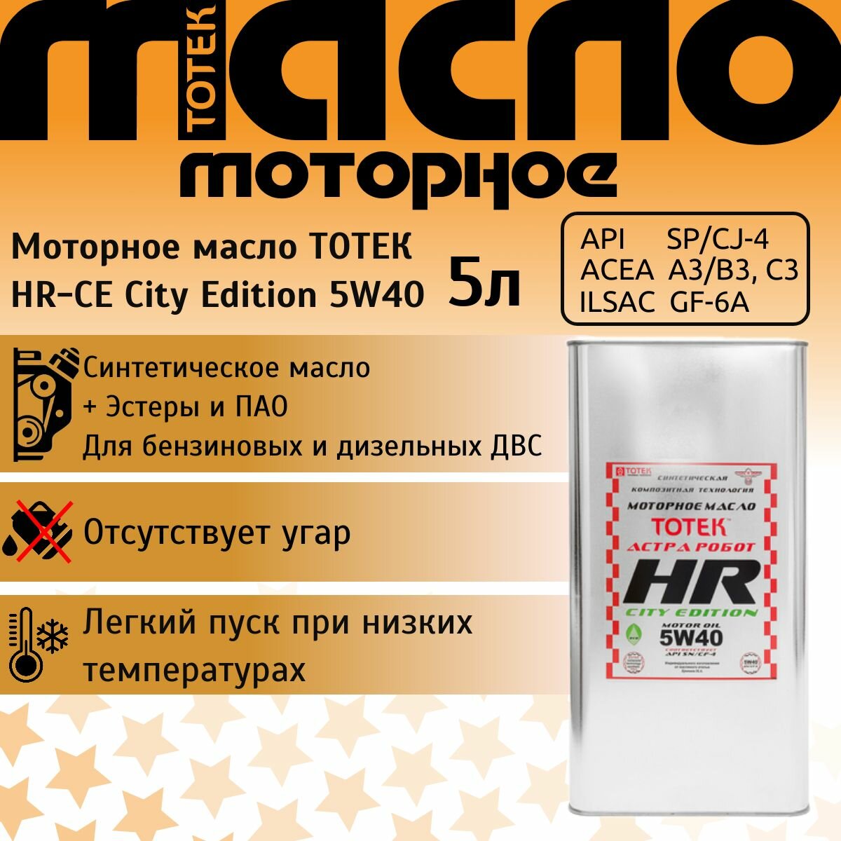 Тотек Моторное Масло Астра Робот HR 5W40 City Edition 5л. жесть HRCE540005