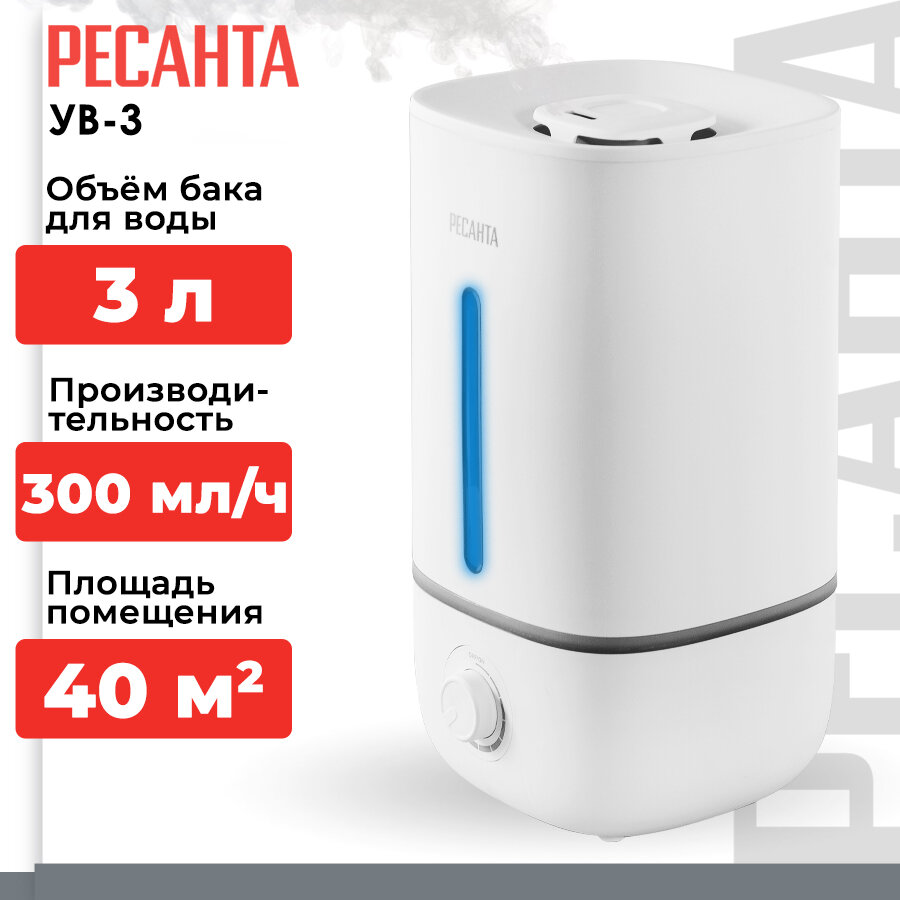 Увлажнитель воздуха для квартиры / для дома белый 3 л, 25 Вт Ресанта УВ-3 увлажнитель для дома (воздухоувлажнитель) 67/7/1