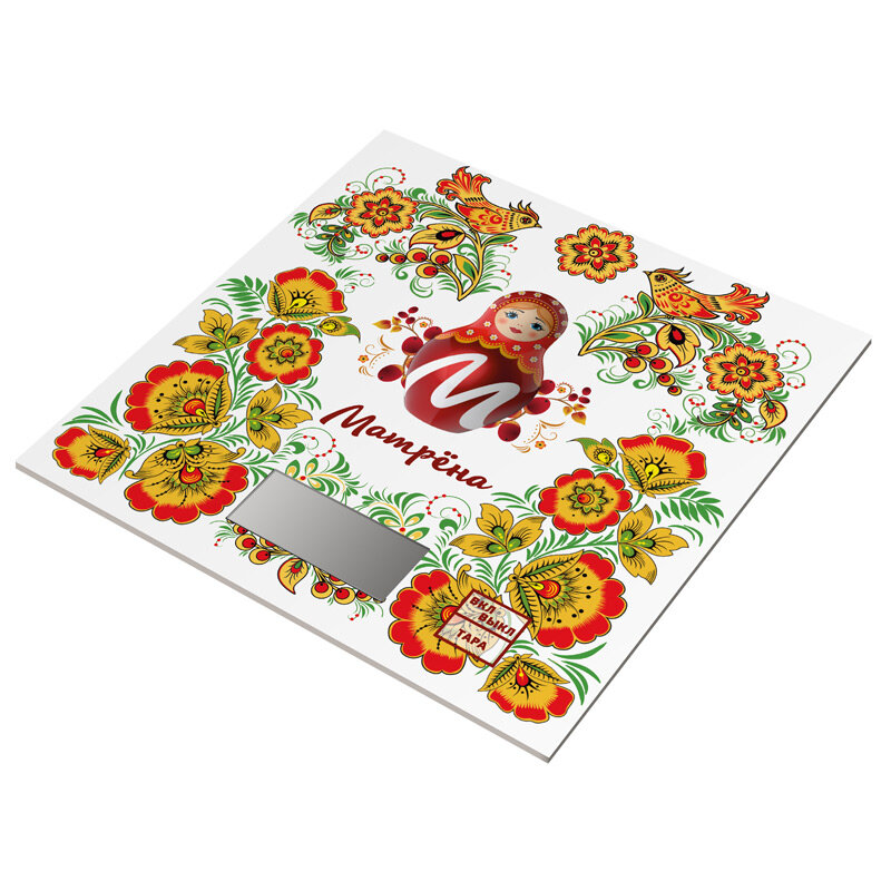 Весы кухонные Матрёна МА-033 005987 Матрешка электронные, стекло, белый с рисунком, нагрузка до 7кг / для взвешивания продуктов / техника для кухни