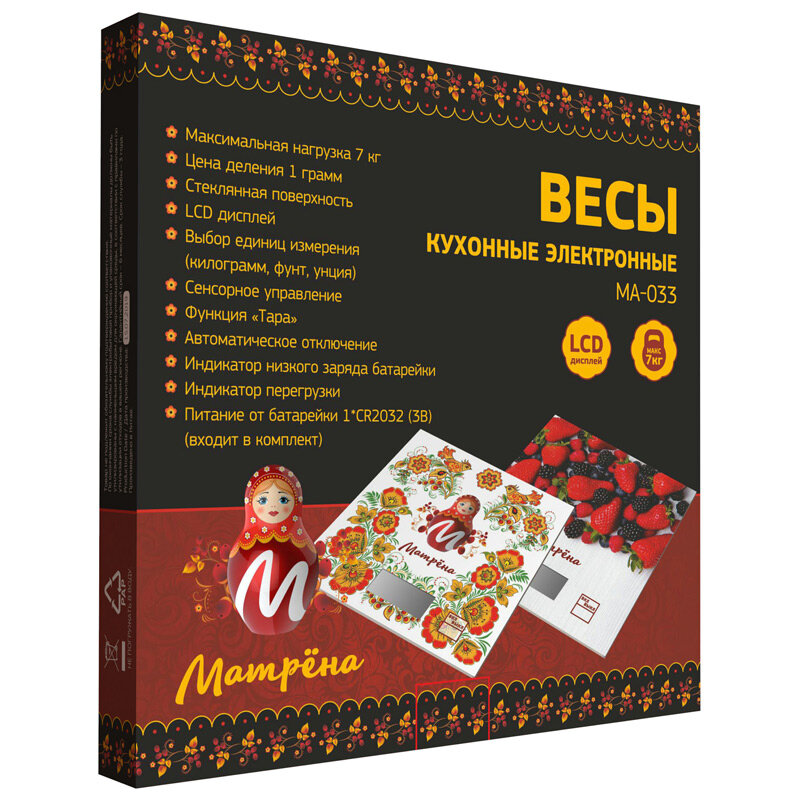 Весы кухонные электронные матрёна MA-033, 7 кг, матрёшка