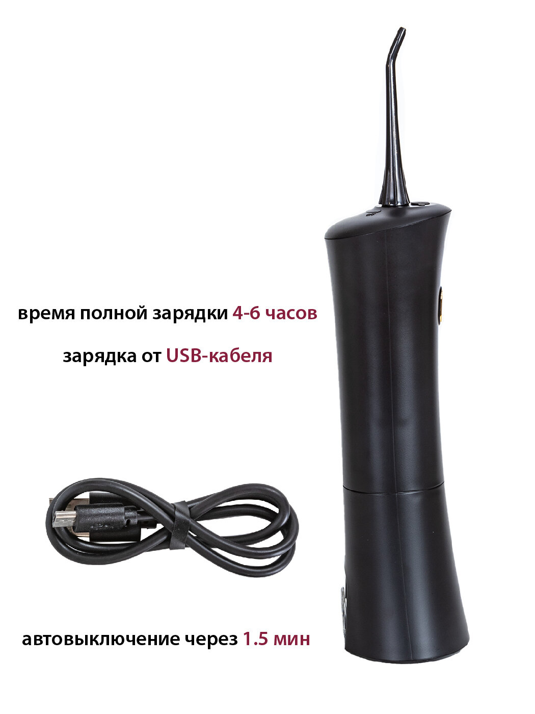 Ирригатор для полости рта Pioneer / Ирригатор портативный беспроводной, 2 струйные насадки, 3 режима, индикация и USB-кабель, 1800 мАч