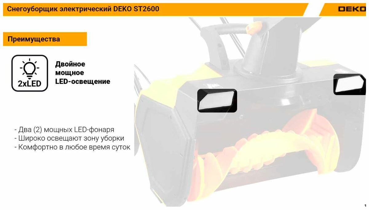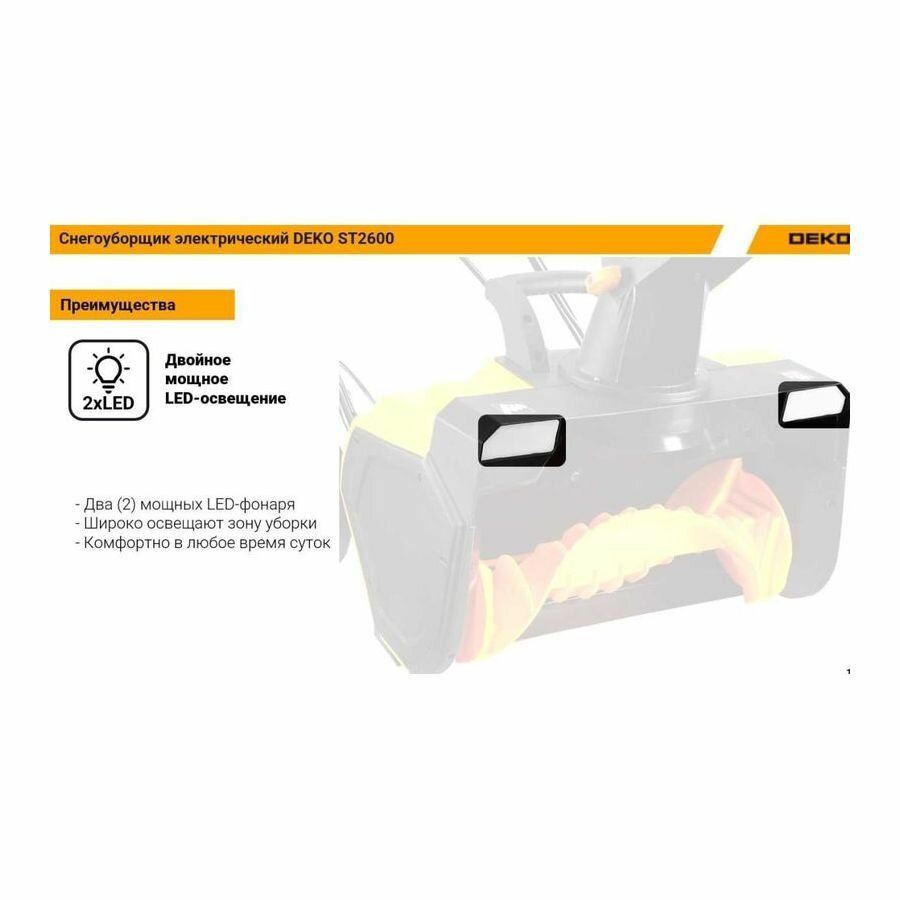 Снегоуборщик электрический DEKO ST2300, 46см, 2300Вт, 2 фары