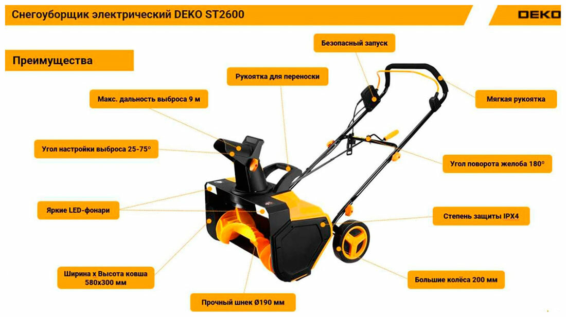 СохранитьСнегоуборщик электрический Deko ST2600 58 см интересное: