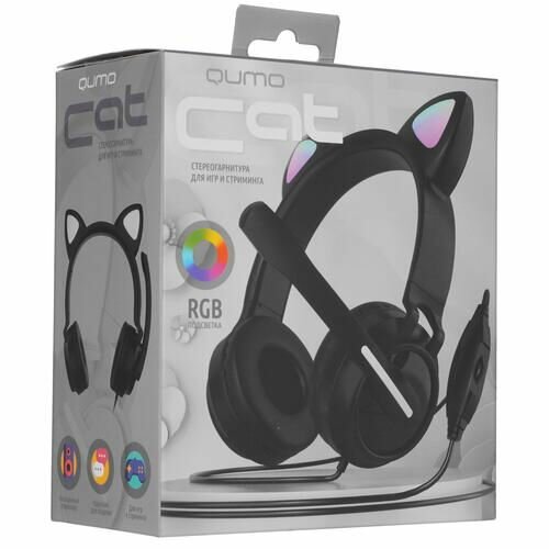 Наушники Qumo Game Cat Black, игровые, микрофон, USB+3.5 мм, 2м, чёрные