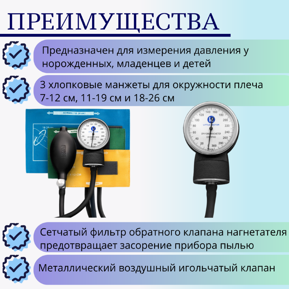 Тонометр механический педиатрический с детскими манжетами 3шт LD-80 Little Doctor/Литл Доктор