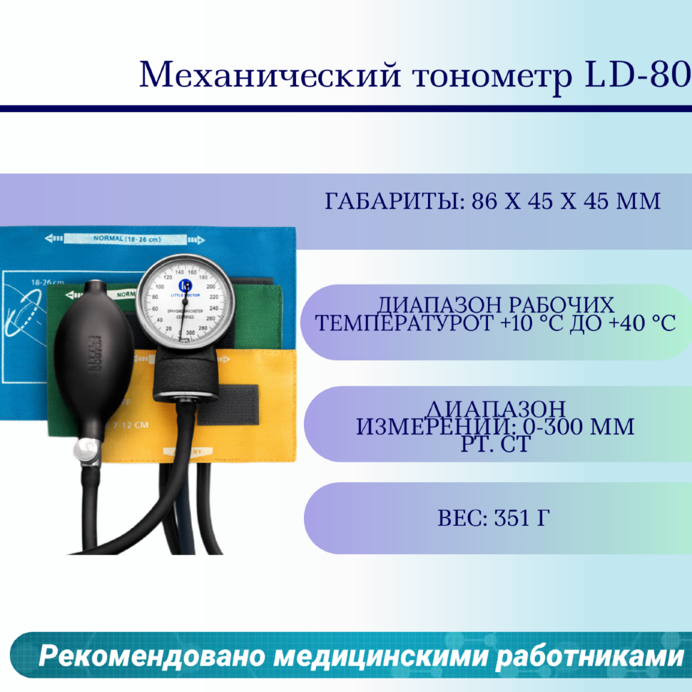 Тонометр механический LD-80 (с тремя детскими манжетами, без стетоскопа)