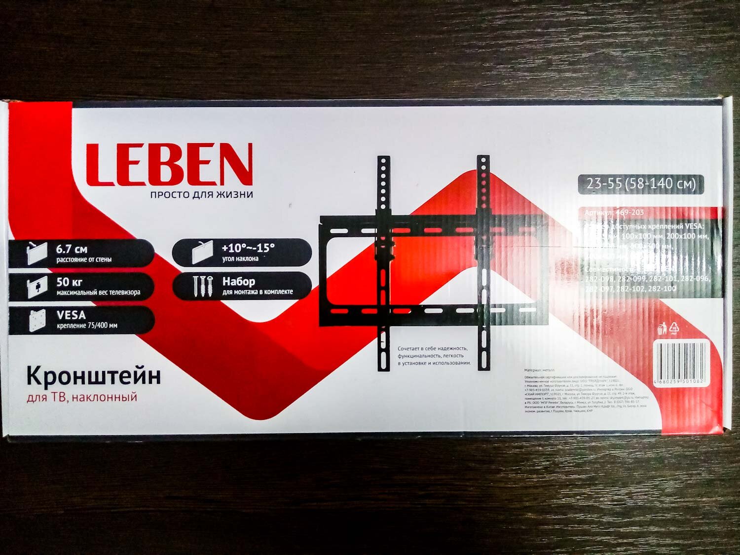 Ниже Вы можете прочитать отзывы на Кронштейн LEBEN 469-203 наклонный 23"-55", ознакомится с подробными характеристиками, посмотреть интересные обзоры и фотографии на Кронштейн LEBEN 469-203 наклонный 23"-55".