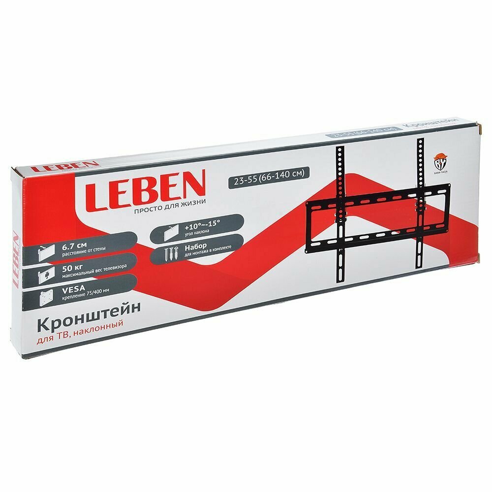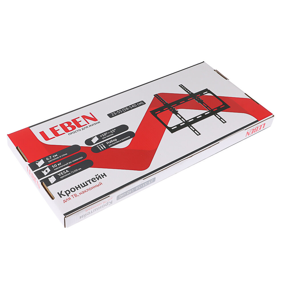 LEBEN Кронштейн для ТВ наклонный, 23"-55", до 50кг, 75x75 до 400x400мм, мет