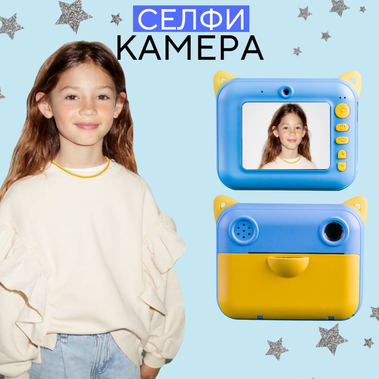 Детский фотоаппарат мгновенной печати голубой интересное: