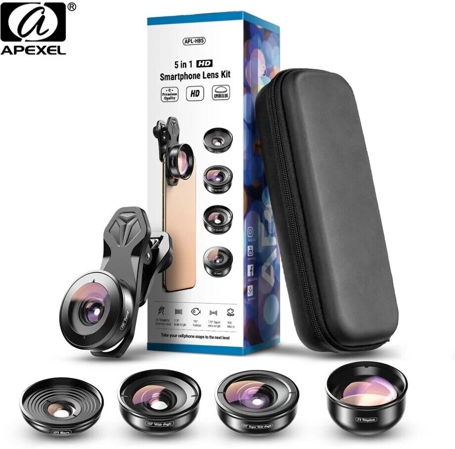 Комплект объективов Apexel 5-in-1 HB5 для смартфона