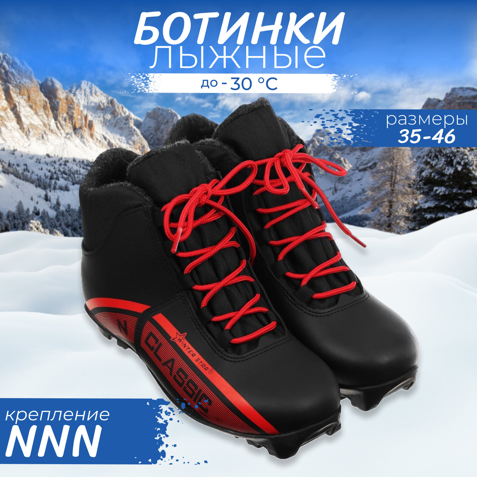 Ботинки лыжныеWinter Star classic, цвет чёрный, лого красный, N, размер 35