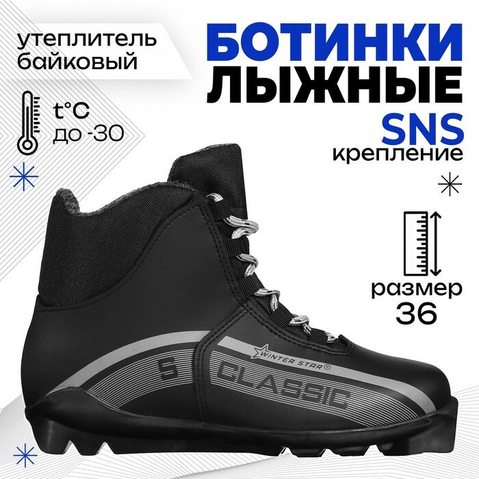 Купить Ботинки лыжные Winter Star classic, Sns, р. 36, цвет чёрный, лого серый Winter Star 9796155