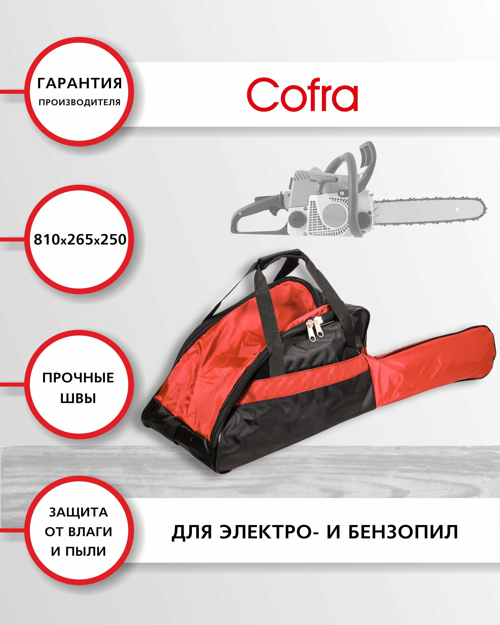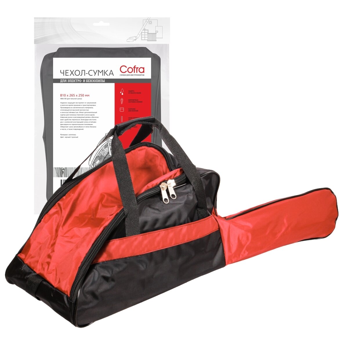Cofra RC-5120 Чехол-сумка для бензопилы синтетический, размеры: 410х265х250 + 400х130 (для пильной шины) 1 шт., цвет: черный/красный интересное: