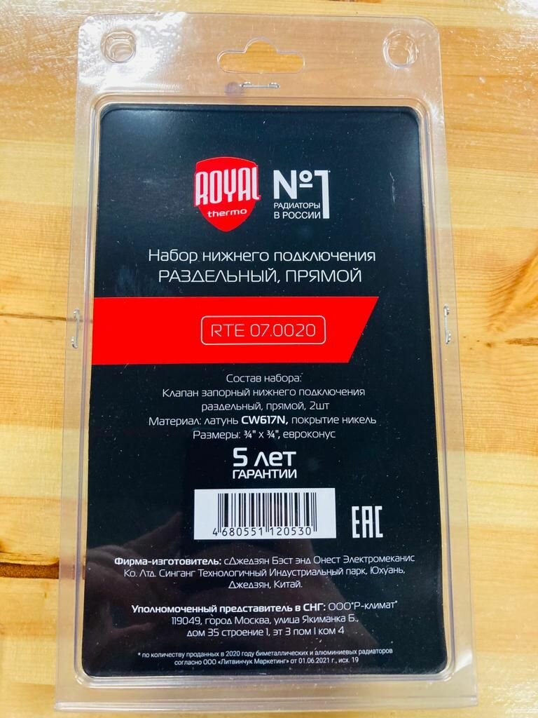 Набор нижнего подключения Royal Thermo прямой раздельный 3/4х3/4ЕК (RTE 07.0020)