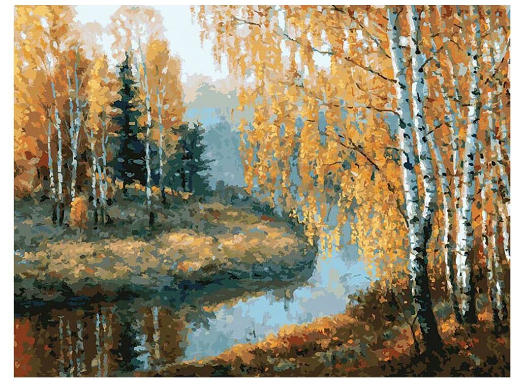 Картина по номерам Белоснежка "Вот и осень пришла" / Раскраска / На картоне 30х40 см. / Пейзаж / Река интересное: