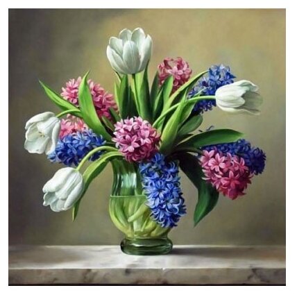 Алмазная мозаика Тюльпаны в вазе 60x60 см. интересное: