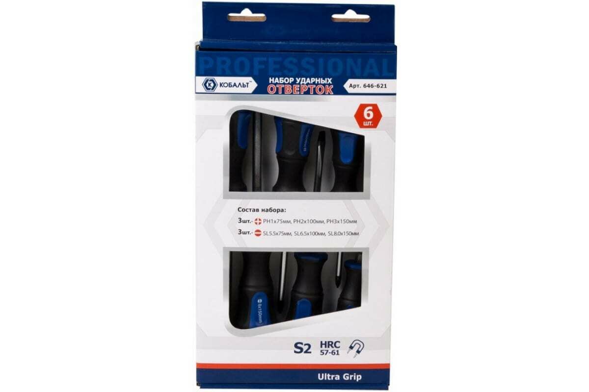 Набор отверток ударных кобальт Ultra Grip S2 (6 шт.) коробка (646-621)